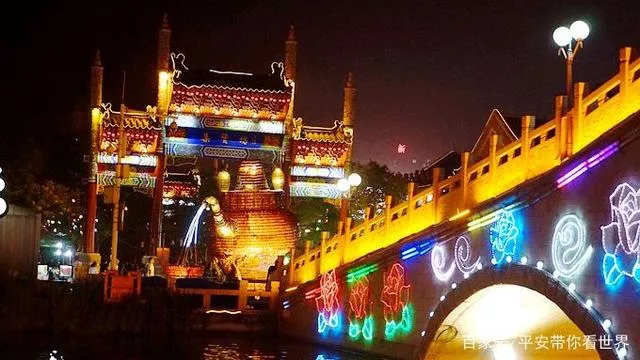 船上的水,船上的人,都在畫中,岸上的建筑和橋,在彩燈的點(diǎn)綴下,都顯得繁華熱鬧。整條運(yùn)河被各式各樣的彩燈裝點(diǎn)著,耀眼繁華無法形容。穿梭湖面,姹紫嫣紅,那種感覺的確可以和南京游覽秦淮河相媲美。