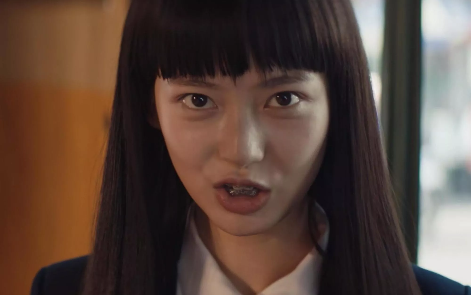 劇情節(jié)奏快不拖沓,恐怖效果暈染的相當(dāng)好,選角也是驚艷。各案件出場的主要人物如酒吧女阿溫,富商妻Ivy,演員演技皆出挑。假扮學(xué)生、實(shí)則殺手的牙套妹,笑起來十分帶感,一咧嘴就是一“變態(tài)”: