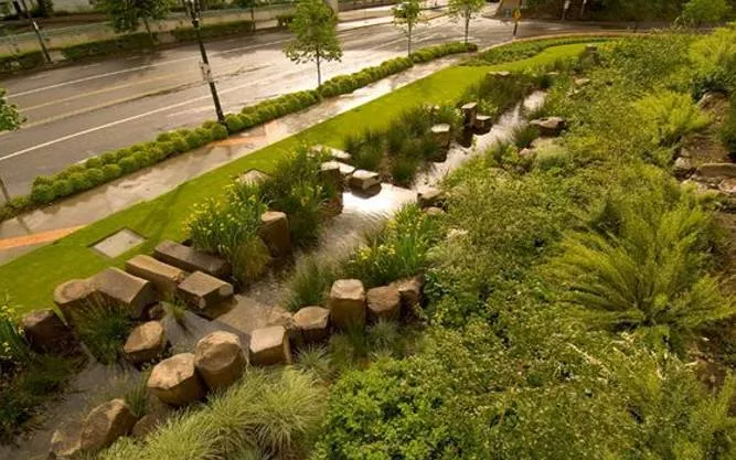 1996年,美國首先在波特蘭嘗試了大尺度的生態(tài)草溝系統(tǒng)設(shè)計,在城市雨水排入Willamette河之前利用植草溝減少了50%的徑流污染。
