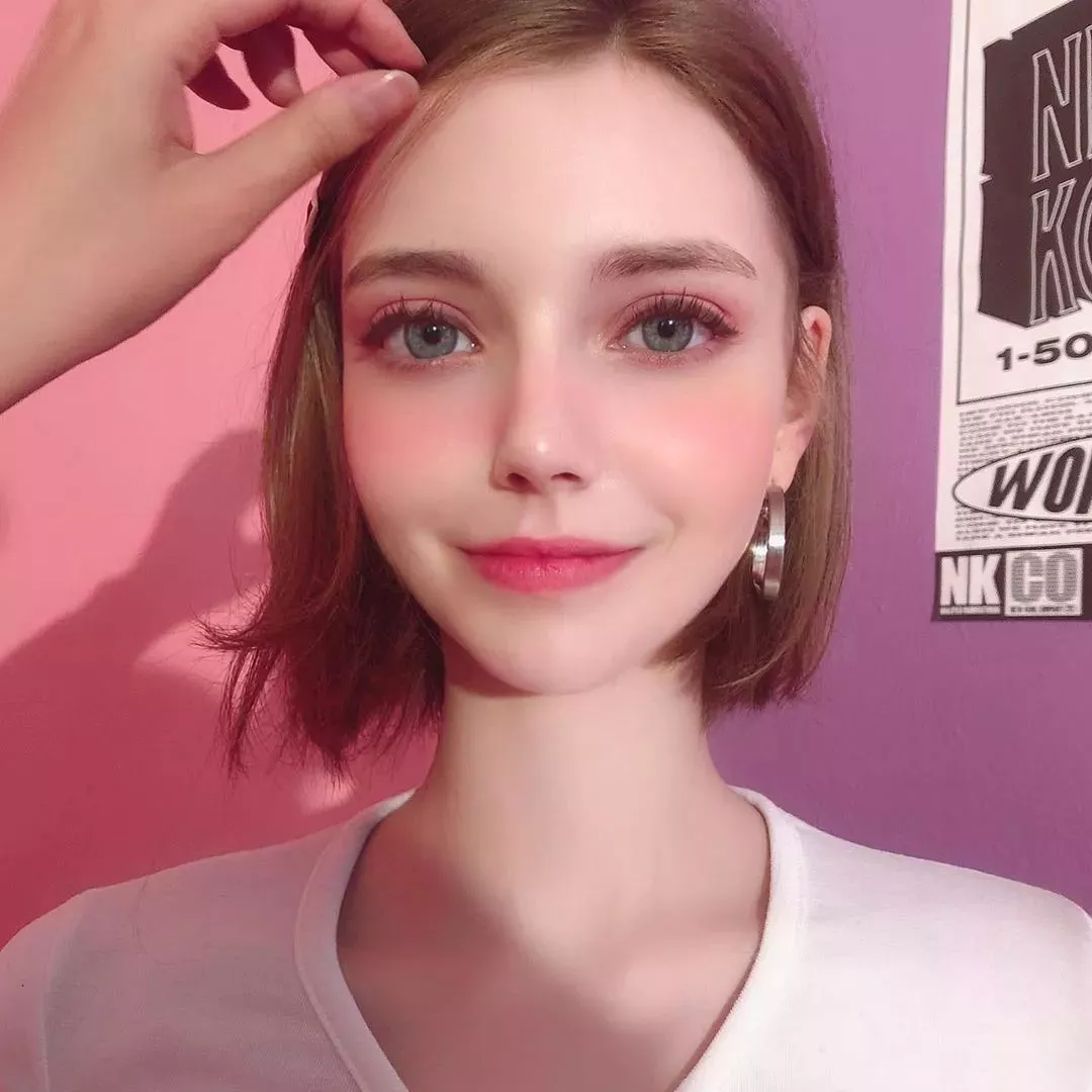 她擁有一頭燦爛的棕色短發(fā)、超精致的巴掌臉和甜美的笑容,透白到會反光的肌膚就像是陶瓷洋娃娃一樣,讓人不敢置信世界上怎么會有如此美麗的人類存在。