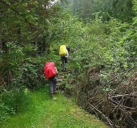 保護(hù)區(qū)建立之前,里邊曾住有人家,山上還曾駐扎過解放軍,是管航空地標(biāo)的部隊。保護(hù)區(qū)建立后,農(nóng)家撤出,對山路也進(jìn)行過修繕,陡滑的地方,都釘了木檔橫格,形成臺階。