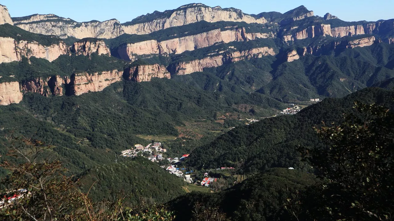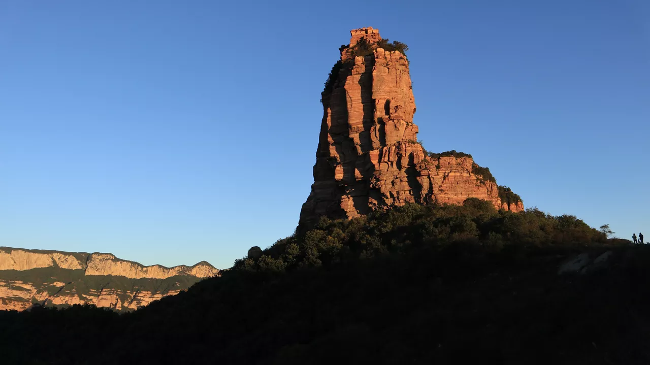 巨大的嶂石巖分三層(三棧)拔出,清晰可見。試想當年(3億年6億年兩度)太行山崛起時,真是天崩地裂,鳥獸飛藏,神鬼不寧。出現(xiàn)了“天傾西北,地不滿東南”“天柱折,地維絕”的恐慌現(xiàn)象。