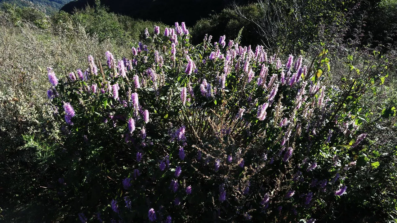 坐落在內丘、臨城、贊皇三縣間的九女峰(內丘叫拉靈山臨城叫金鑾山)去過多次,但遇上上好的天氣還是不容易。從九女峰到嶂石巖(邢臺叫黃庵硇)走過的人不多,那里山高林密,下降攀升的幅度很大,基本是在山根和山石墜下的斜坡邊緣穿行,且要繞過伸出的三個山頭,再爬上一棧(離地面最近的那一層)走了5個小時。距離不清。兩個向導在前面,我在后面邊走邊拍,拍了千余張圖片。終點是河北省內丘縣杏峪村。植物,有幾種不認