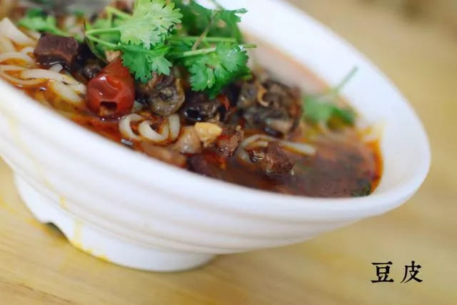 豆皮其實(shí)是一種用米粉和淀粉經(jīng)過(guò)烙制而成的粉,長(zhǎng)得像面條,可煮可炒。分米豆皮,綠豆皮,包谷(玉米)豆皮,其中米豆皮最受恩施人喜歡。