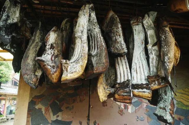 土家人家家都興喂年豬、制臘肉。用柏樹(shù)枝、甘蔗皮、椿樹(shù)皮或柴草火慢慢熏烤,或者掛在灶頭頂、烤火爐上慢慢熏干。