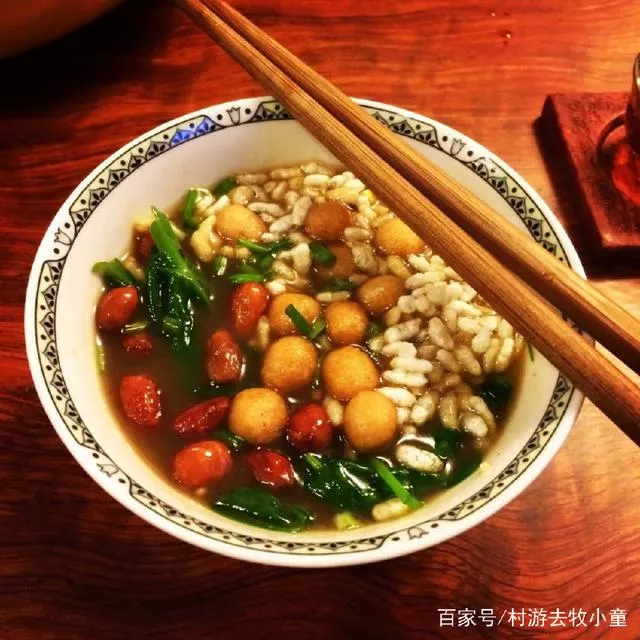 最正宗的喝油茶湯的方式,不是用筷子,也不是用湯匙,而是邊喝邊吹、邊不停地輕微晃動(dòng)著湯碗,湯的旋轉(zhuǎn)帶動(dòng)食物漂浮,此時(shí)趁機(jī)連渣帶湯一起喝掉。