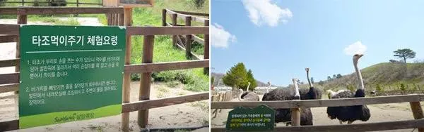 這是游客們?nèi)觌S時(shí)都可以進(jìn)行牧場(chǎng)體驗(yàn)的活動(dòng)之一:從無(wú)人售賣機(jī)購(gòu)買鴕鳥飼料后,按順序用備好的瓢喂食鴕鳥即可。