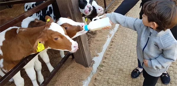 游客們可以在牧場(chǎng)指定時(shí)間段內(nèi),親自體驗(yàn)喂奶4個(gè)月左右小牛的喜悅。