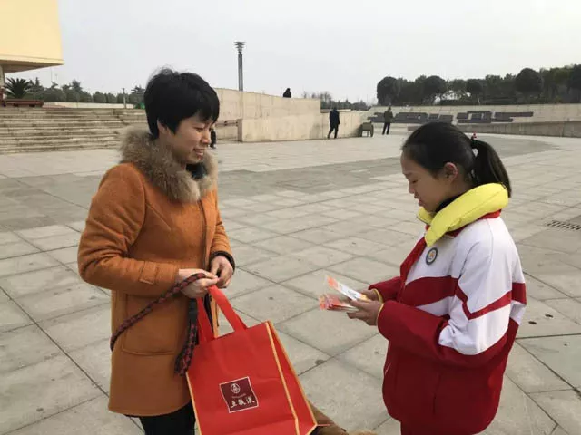 同學(xué)們向市民群眾發(fā)放宣傳手冊,為雷鋒城建設(shè)貢獻(xiàn)一份自己的力量。