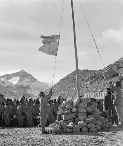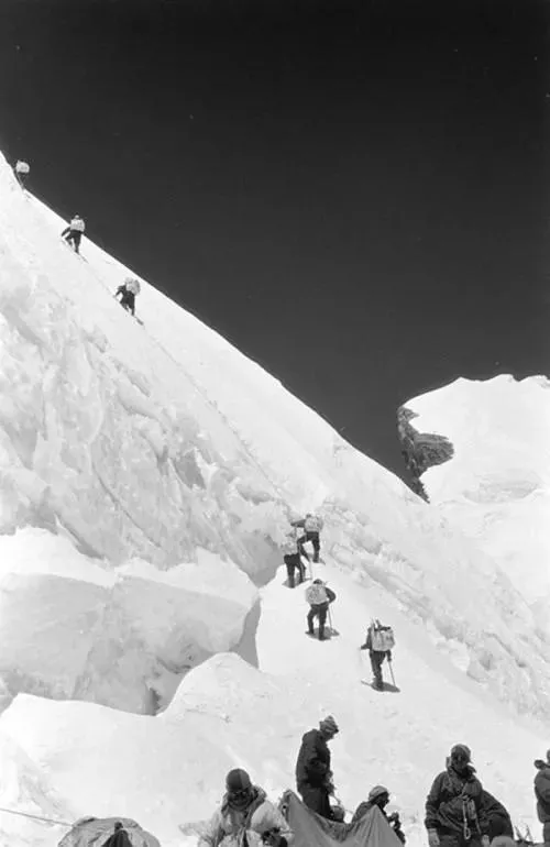 ▲1975年中國隊員登頂珠峰,新華社圖