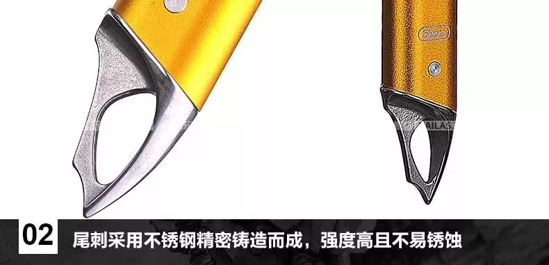 鎬頭、尾刺與管身的連接采用特殊工藝,可承受高達(dá)10KN的拉力,遠(yuǎn)高于CE要求的2KN。