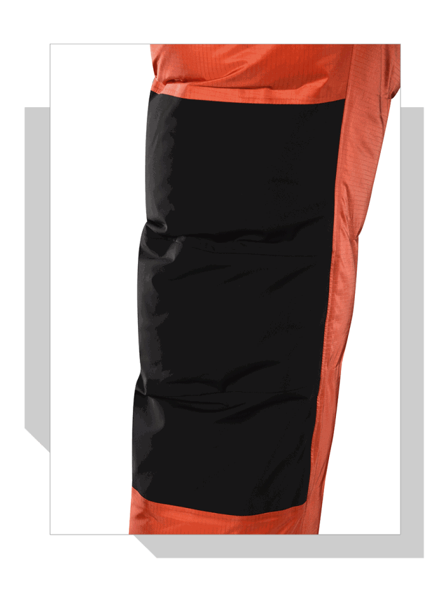 耐磨——肩、肘、衫角、膝蓋、臀部、踝部,易磨損位置設(shè)置耐磨面料,雙重保險,保證你在粗糲的巖石,在鋒利的冰塊里摸爬滾打時,也不用懼怕連體羽絨服出現(xiàn)嚴(yán)重破損。