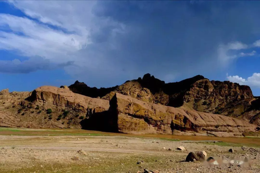 從50公里開始,進入國道242的第二標段,一碧千里的草原被公路分成兩邊,又在車身后合攏。放眼望去,密密層層的柔嫩牧草平展地鋪向遠方,最終與藍天交融。遠處,若隱若現(xiàn)的連綿陰山,在流動的云彩遮蓋下,呈現(xiàn)出深淺不一的光影效果;近處,牧羊人趕著羊群,駱駝、馬兒、牛群悠然自得,在廣闊的天地中,無拘無束。行至在103公里路西山腳下,有很大一片古廟遺跡,從導(dǎo)航上查到叫做查干高勒廟,從規(guī)模上看,是一座很大的古廟群,留下了歷史的烙印。