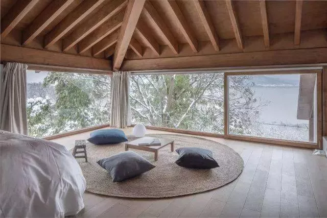 小別墅內(nèi)配備泡池、冰箱、地暖、空調(diào)、音響、唱片機(jī)、投影儀等現(xiàn)代設(shè)施,一層為全景客廳,可以直接看到湖景,開放式廚房,二樓是兩個(gè)臥室,可同時(shí)入住四人。另外,這里提供的營養(yǎng)早餐以及各色小吃也是很豐盛的呢。