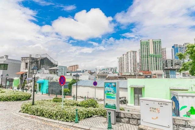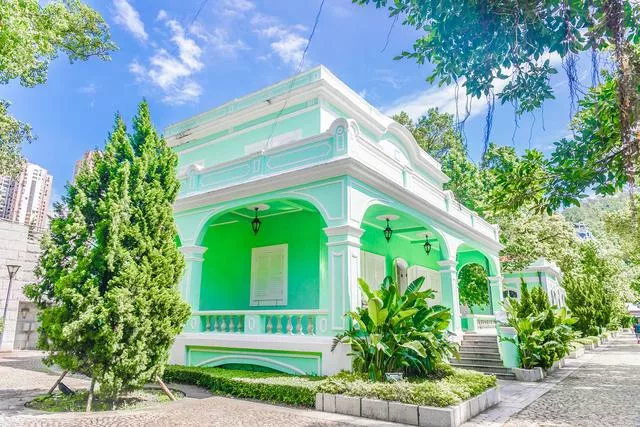 來澳門一定不能錯(cuò)過的就是氹仔半島,從望德圣母灣街開啟了我們今天的行程。澳門有的最多的就是博物館和教堂,來到這兒自然也是不能錯(cuò)過的。因?yàn)榻烫妙伾G麗一直都是拍照打卡的圣地,今天就帶大家來一個(gè)澳門小眾拍照景點(diǎn)“龍環(huán)葡韻”,人少景美絕對是少女最愛。此行的第一站便是一個(gè)非常夢幻,充滿著清新范兒的龍環(huán)葡韻,看到前面的綠色的建筑物就到了。所謂的龍環(huán)葡韻就是五幢薄荷色的葡式建筑物,展示著曾經(jīng)的葡