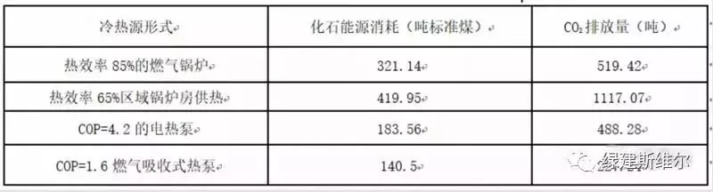 表2 不同冷熱源型式的化石能源消耗和CO2排放量