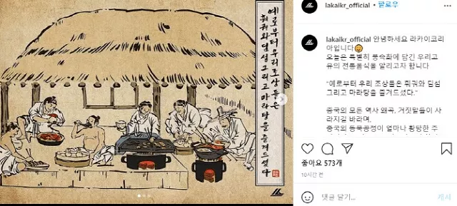 1日在它們官方 instagram 上表示“今天我特別想向大家展示我們特有的傳統(tǒng)風(fēng)俗畫?!辈⒎Q:“從很久以前開始,我們的祖先就喜歡吃‘火鍋’和‘麻辣湯’”。與此同時(shí),公開的風(fēng)俗畫中還描繪了男女聚集在家門口吃火鍋和點(diǎn)心的場(chǎng)景。