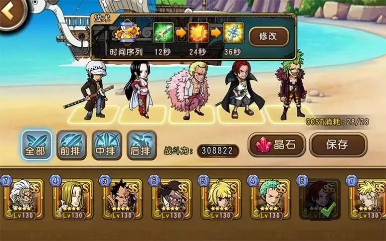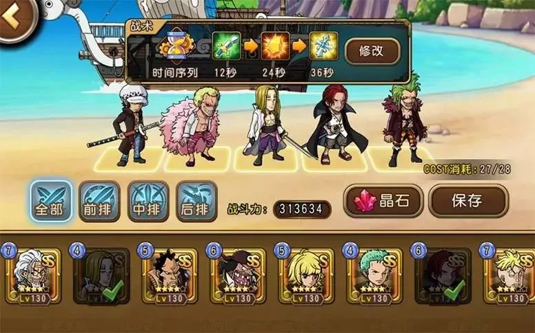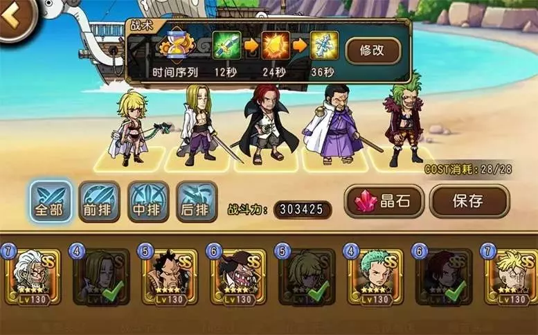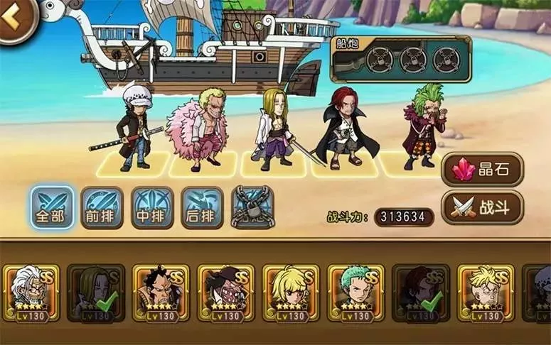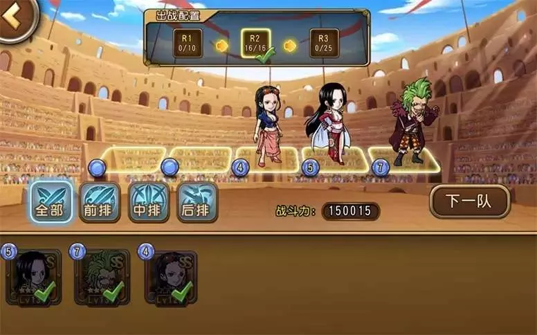 這是專為普通玩家準(zhǔn)備的陣容。杰克斯開放突破已經(jīng)半年有余,多數(shù)玩家都不在話下了,白胡子更是普遍到了四覺橙專以上(當(dāng)然新區(qū)例外)。巴爾托洛梅奧、藤虎都重在技能,而不是特別看重覺醒和專屬,此外羅能開大最好,開不出大也就當(dāng)是給主力輸出儲備額外的半條命了。實戰(zhàn)沒有很多可說的,3個輔助卡輔助2個強力輸出,不過效果確實還不錯。