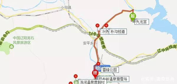 從九龍宮到弓長嶺溫泉滑雪場的交通路線:九龍宮-姑小線-燈皇線-安平路-弓長嶺-弓黑線-弓長嶺溫泉滑雪場。全程17.9公里,27分鐘。