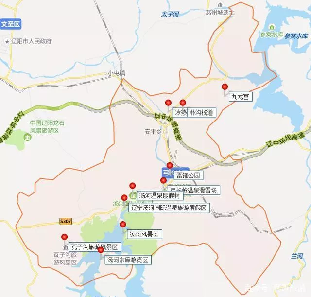 位于遼寧省遼陽市弓長嶺區(qū)雙泉街附近的湯河溫泉度假區(qū)。