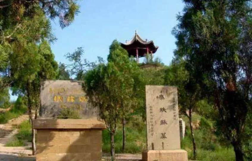 綏德縣疏屬山頂,有一座不高的小山,旁邊有一條大理河,扶蘇的陵墓就在這里。扶蘇墓圍墻四周被居民包圍,扶蘇墓呈長方形,高約8米,墓旁有明朝時扶蘇祠碑記,陵墓沒有任何修飾,松、柏、槐等林木散發(fā)著一股森嚴(yán)之氣,墓冢靜靜的矗立在那兒,讓人不敢相信這就是秦始皇長子的墓。