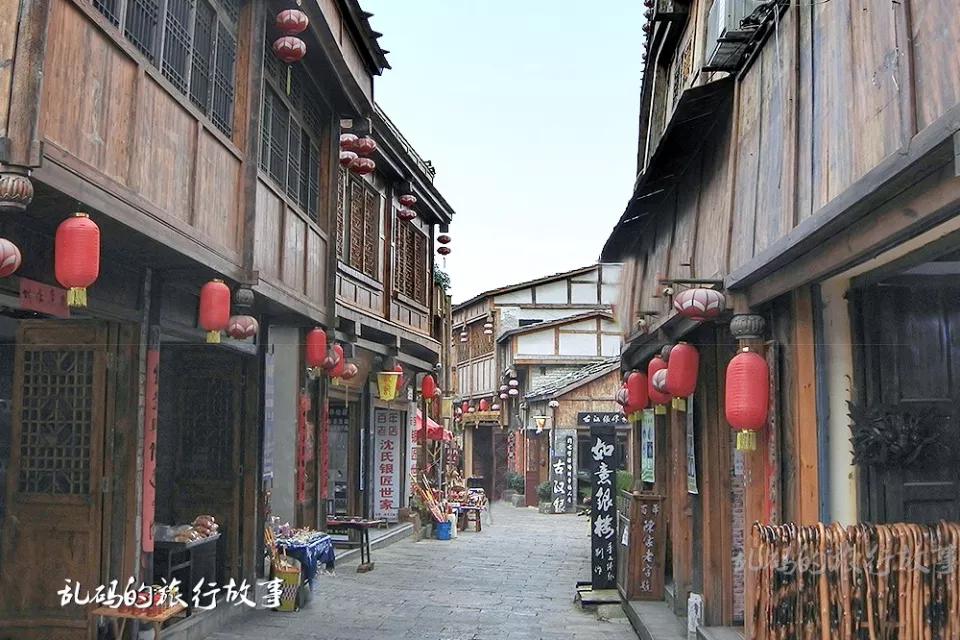 古鎮(zhèn)的每條街巷都由石板鋪制,其中一條名為“九道坎”的窄巷,雖僅夠兩人擦肩而過(guò),卻是古鎮(zhèn)里石巷保留最完整的地方,行走其中,給人一種穿越時(shí)空的感覺(jué)。在當(dāng)?shù)亓鱾髦欢雾樋诹铮骸笆^的瓦蓋石頭的房,石頭的街面石頭的墻,石頭的碾子石頭的磨,石頭的碓窩石頭的缸”,可謂將石頭的作用體現(xiàn)得淋漓盡致。