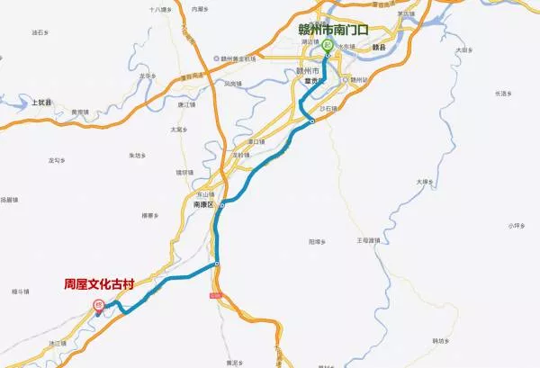 自駕游路線:贛州市南門口——贛州繞城高速——大廣高速——康大高速——S323——周屋文化古村