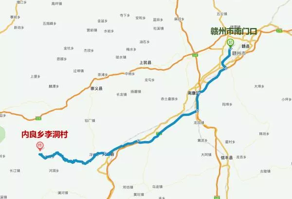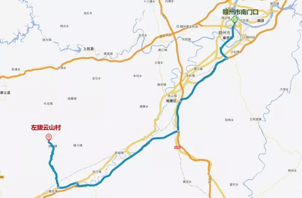 自駕游路線:贛州市南門口——繞城高速——大廣高速——康大高速——S323——左拔云山村