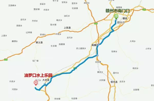 自駕游路線:贛州市南門口——贛州繞城高速——南康南樞紐——大廣高速——康大高速——S323——油羅口水上樂(lè)園