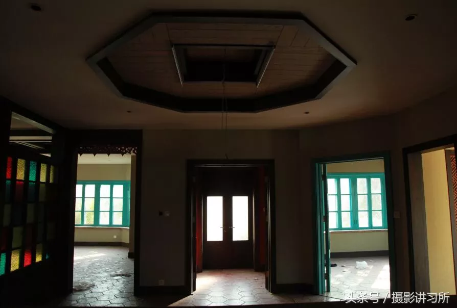 因著末代皇帝和皇后的光顧,它同附近的一棟建筑分別被稱作“溥儀樓”和“妃子樓”。如今的溥儀樓經(jīng)過數(shù)度改造已成為一家會所,而作為大和旅館黃金山分館的主樓保護狀況堪憂。(圖為:建筑內(nèi)部。這里曾經(jīng)做過高檔會所使用,據(jù)說消費起價是萬元,如今不許部隊房子出租,這里已經(jīng)人去樓空。攝影:劉晗峰)