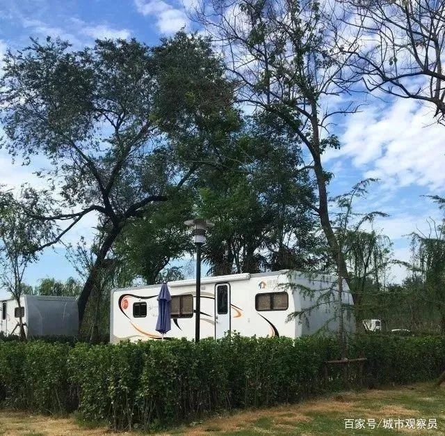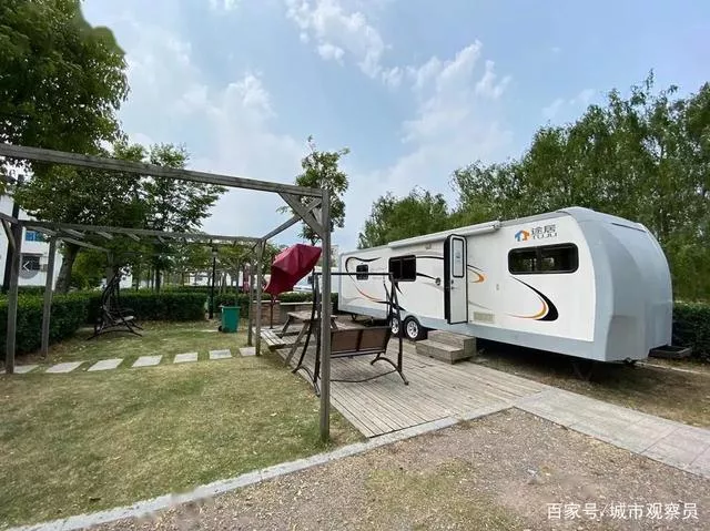 房車外部長(zhǎng)9米,寬兩米,每輛房車都擁有獨(dú)立的戶外空間,如小車停車位、休閑平臺(tái)、燒烤臺(tái)等。