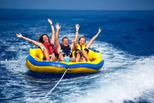 海上飛魚船是極具驚險(xiǎn)刺激的娛樂項(xiàng)目,喜歡體驗(yàn)刺激的朋友一定不能錯(cuò)過。飛魚船是由一部摩托艇牽引行駛,速度是香蕉船的2倍。坐在飛魚船上隨著海浪的高低起伏,可以感受坐在香蕉船的感覺, 當(dāng)摩托艇加速時(shí),飛魚飛離海面,同時(shí)又可以感覺坐在一只風(fēng)箏上感受放飛心靈的樂趣,當(dāng)摩托艇急轉(zhuǎn)彎時(shí),整個(gè)飛魚會(huì)在空中轉(zhuǎn)彎,感受賽車時(shí)飄移的刺激,也可能會(huì)被甩到海里,所以是必須穿上救生衣參與此項(xiàng)活動(dòng)的。工作人員會(huì)幫助落水游客再次回到船上。