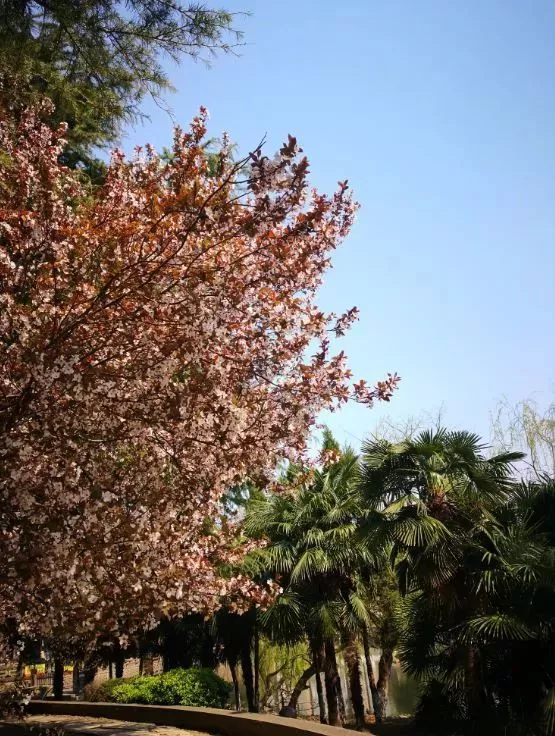 環(huán)園小道兩側花木扶疏,紫荊、牡丹、迎春、繡球、丁香、紅梅等130余種名花異草,賞心悅目,沁人心脾。紅楓、青楓、桂花柏樹、香樟、廣玉蘭等六大林帶,錯落有致,巍為壯觀。