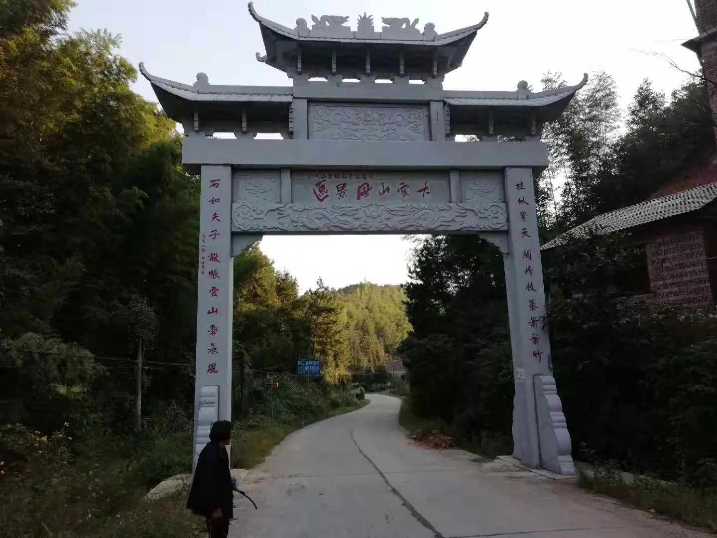 沉吟玩味上述對聯(lián),讓未登臨大云山的人似有身臨其境之感!讓置身大云山的人滋生留戀忘返之意!但仔細(xì)琢磨不難看出立于“五一村”的牌坊卻存在一些有待建設(shè)方糾正的錯誤。