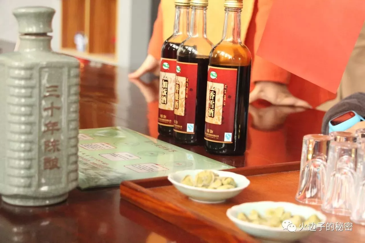 在參觀完博物館的最后,酒廠非常周到的在出口為我們準(zhǔn)備了三十年陳釀和香雪酒,還有一碟茴香豆。
