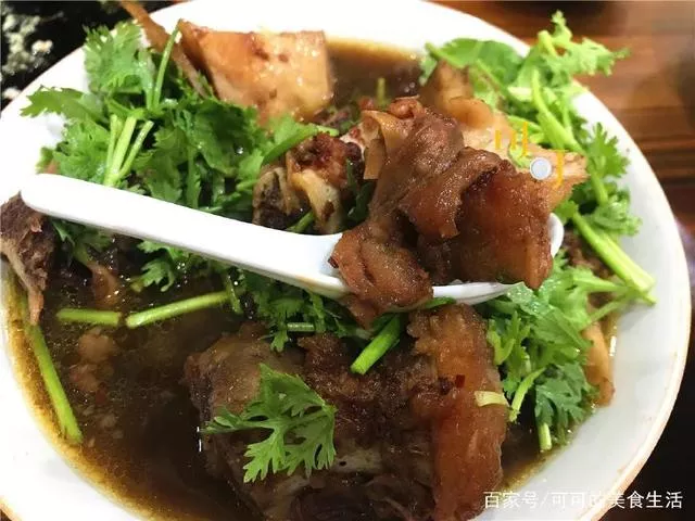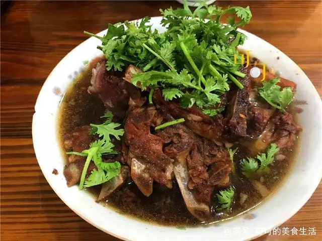 店里的招牌小吃羊骨頭湯隨后上來了,好大一碗羊肉骨頭哦,羊骨頭湯真的很好喝,微辣,我加了一把香菜提香解膩,羊骨頭用小火慢燉,不知用了幾個小時,骨頭都已經(jīng)酥了。上面的肉雖然不算多,但是真的很軟很糯啊。
