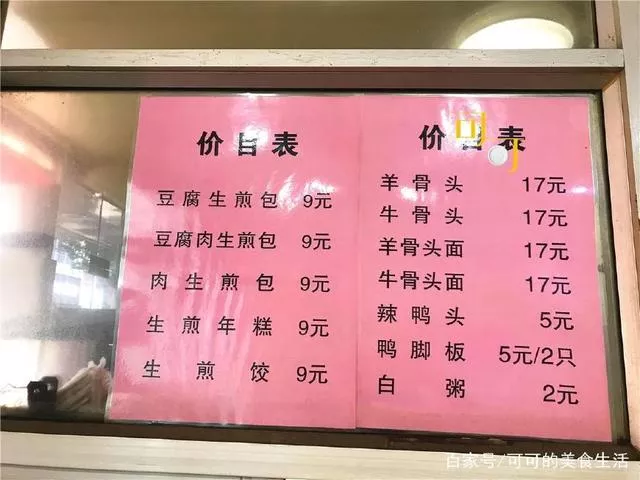 這是價目表,主食生煎包一律9元,骨頭湯一律17元,價格整齊劃一在其它地方倒是很少見,你只要考慮想吃什么,而不用比較價格。我們很保守地點了一客豆腐煎包,一碗羊骨頭,再加一只辣鴨頭。