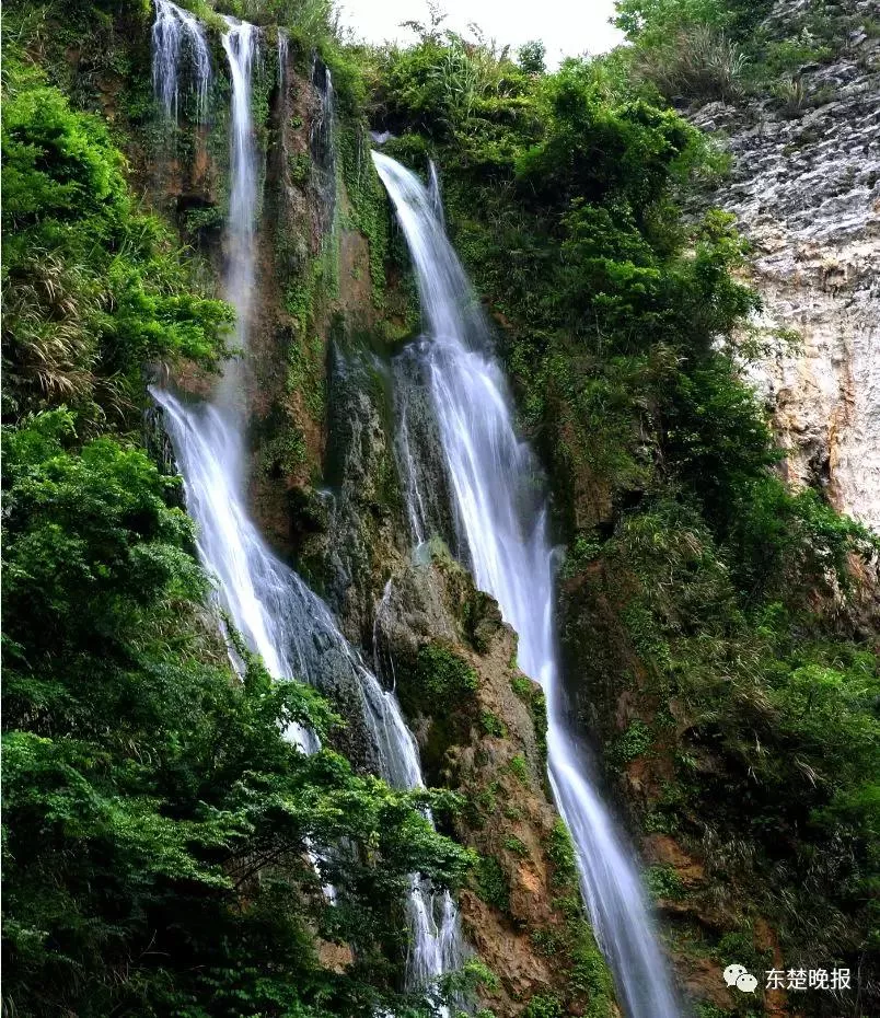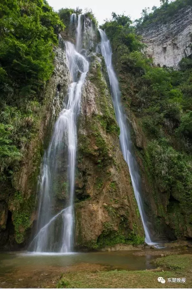 “這是第一重瀑布,今年干旱,現(xiàn)在又是枯水期,所以,瀑布縮水了不少,只保留了右側(cè)一道細(xì)流,每年五六月份時(shí),水量大,左右兩道水流像兩道彩虹,那才是瀑布最美的時(shí)候?!睆埑芍倚χ嵝?,來年春花爛漫時(shí)節(jié)再來賞瀑。