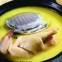 4.燒熱油鍋,加入花椒稍炸,倒入砂鈉內(nèi),蓋上蓋,用小火煨l(wèi)小時后,端下砂鍋,揭開蓋,取出肘子肉,輕輕端出鍋墊,把雞肉、鱉裙翻扣在大湯碟內(nèi)。