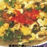 假如你徜佯在紫陽街的白塔橋附近,你也會看到有一大堆人就在街頭的小攤邊,每人一把小凳,零亂地坐著,享受著豆面碎和面結(jié)的鮮美。把豆面浸在水里,待其發(fā)漲至發(fā)白時,再放在鍋里燒煮,同時放進(jìn)豬肉丸(圓)、小油泡,有時放在肉湯或雞湯中煮,味道特好。一種用千層包裹已調(diào)好料的精肉,再用粽樹葉捆扎起來,這就是“面結(jié)”。把它與豆面碎一起燒煮。如在街頭或屋檐下的小攤上買上一碗豆面碎加面結(jié),配上蔥辣味精,不但鮮美香熱,而且令人生出些許舊時風(fēng)情,幻化出昔日的無限韻味。