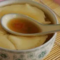 古田“豆腐仔”,叫賣的通常挑著一擔(dān)木桶,一個(gè)桶裝著裝“豆腐仔”,另一個(gè)桶裝碗和清水?!岸垢小毖b在一個(gè)木桶里,溫溫的.通常是有客來的時(shí)候,就用一個(gè)扁圓形的勺子刮幾層裝在碗里,要吃甜的就加點(diǎn)糖水,薄荷水,吃咸的通常加點(diǎn)醬油稍微攪拌一下,很清爽,是消暑的上佳食品。