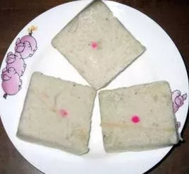 沙糕板 廣東 ? 惠州 ? 惠陽 惠州風俗,小孩出生“做半月”,外婆必定要做沙糕板,分發(fā)鄰里眾親慶賀。沙糕板以三成粘米粉、七成糯米粉混合,加白糖過篩,蒸熟切成兩寸見方的塊,松軟可口,是當?shù)貎和貏e喜歡的零食,舊時賣沙糕板的小販往往習慣將蒸糕的板隔頂在頭上沿街叫賣,為古城風情一景。 贊 (0) 39 151 生成海報 穗花杉 下一篇 0001-01-01 斂糕 上一篇 0001-01-01 相關(guān)推薦