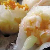 又稱蝦餃。以熟淀面即淀粉(又稱澄粉)面團(tuán)作皮,鮮蝦肉、豬肉泥、嫩竹筍等拌勻作餡,包成餃形蒸制而成。皮薄白,半透明,軟韌而爽,味鮮香醇,被外省同行稱為三絕。因其形似彎梳,故又稱彎梳餃。皮薄、爽軟,色白,晶瑩透亮,餃內(nèi)餡料隱約可見;餡心鮮美,形態(tài)精致玲瓏。此品是20世紀(jì)30年代廣州市河南區(qū)伍村伍鳳鄉(xiāng)的一間家庭式小茶樓首創(chuàng)。起初,用料和造型都較粗糙,但因它選用剛從河里捕的鮮蝦作餡,鮮美異常,為早茶市食客鐘愛。后來,傳入廣州市區(qū)各大茶樓、酒家被廣為流傳,經(jīng)久不衰。淀面,是從面粉中分解出來的,用于作點(diǎn)心,目前僅限于廣東,此粉性軟,延伸性小,可塑性大,點(diǎn)心師們利用其特性,逐步改制成龍珠餃、鳳眼餃、百花餃等多種精美點(diǎn)心,款式多樣而新穎。