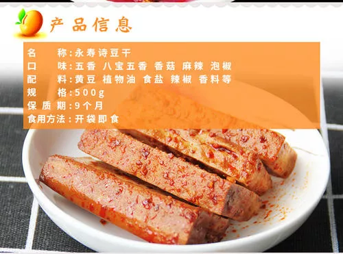 永壽寺豆腐干是由武勝永壽寺僧人研制而出,距今已有上千年的歷史。永壽寺始建于宋祥符二年(公元1009年),堪稱武勝第一廟,相傳豆腐干是在宋紹圣四年(公元1097年)由寺內(nèi)主持宋鑒供和尚帶領(lǐng)眾僧,勤儉節(jié)約,以苦為榮,為改變飲食結(jié)構(gòu),研制出味鮮,細(xì)綿可口的豆腐干,經(jīng)過幾百年一代又一代的寺內(nèi)主持精研傳授,不斷改進(jìn)制作方法,終于試制成功了永壽寺豆腐干。到新中國成立時(shí),一個(gè)唐和尚將制作工藝,永壽寺豆腐干,永壽寺豆腐干簡介,武勝縣特產(chǎn)