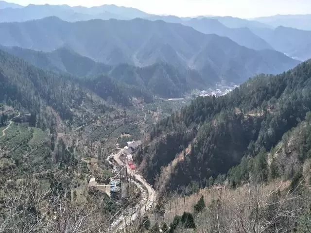 回到洞門(mén)前平臺(tái)極目遠(yuǎn)眺,可見(jiàn)山脈,群山環(huán)抱,連綿不斷。蒼松翠柏點(diǎn)輟,綠草植被覆蓋,顯得景色秀麗,在高處俯瞰下面有“一覽眾山小”的感覺(jué)。