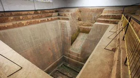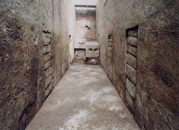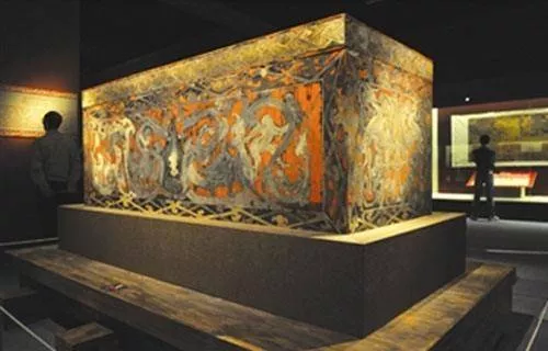 (一)木槨墓:漢代的木槨墓繼承商周傳統(tǒng),在長(zhǎng)方形豎穴土坑內(nèi)用木板搭筑槨室,一般有斜坡式或階梯式墓,多重棺,但已沒有先秦天子七重、諸侯五重那樣嚴(yán)格的棺槨制度。諸侯王和列侯墓多3-7重棺槨,南方地區(qū)多見3-4層槨箱,槨一般不再分層,隨葬鼎、盒、壺等成套銅、漆禮器組合。典型的有湖南長(zhǎng)沙馬王堆漢墓和廣西貴港羅泊灣漢墓(西甌君墓)。
