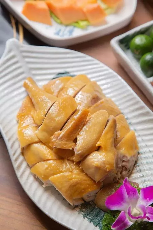 海南白切文昌雞是海南省文昌市地區(qū)最負盛名的特色傳統(tǒng)名菜,屬于海南菜,與加積鴨、東山羊、和樂蟹并稱為“海南四大名菜”,更是位居海南四大名菜之首,在海南有無雞不成宴的說法。海南文昌雞具有皮薄嫩滑、肉味馥香的特點,其烹調(diào)方法有很多種,其中以白切文昌雞最為出名,最能保持文昌雞原味特點,其做法看似間單,但做法講究。白切雞的調(diào)料非常具有海南特色,主要有生姜、蒜泥、香菜、精鹽,雞湯以及桔子汁組成,橘子汁選用海南本土生長的小橘子,汁酸甜可口,融和了蒜頭,香菜,蒜泥等。成菜特點是表皮酥薄,肥而不膩,讓人垂涎欲滴。白切文昌雞