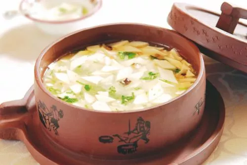 平橋豆腐 平橋豆腐是最著名的豆腐料理之一,是江蘇省淮安市的一道名菜,屬于淮揚菜,該菜品作為淮揚菜系的扛鼎之作,其選用內(nèi)脂豆腐,將其切成一致的菱形小塊,配以雞肉丁、香菇丁、香菜沫,用鯽魚腦起鮮,因其起鍋時淋了一層明油看似不冒熱氣,其實很燙,一定要小心慢用。平橋豆腐經(jīng)濟實惠,美味可口,食而不膩,清素入肺,小編提示:成菜上桌后略帶油脂看似不冒熱氣,其實很燙,需吹后食之,小心慢用?!驹敿殹?br />中文名:平橋豆腐分類:淮揚菜口味:鮮香可口主要食材:內(nèi)脂豆腐,雞肉,香菇,香菜,鯽魚等特點:經(jīng)濟實惠,美味可口流行地區(qū):江蘇·淮安 贊 (0) 39 151 生成海報 一品豆腐 下一篇 2008-08-08 蟹黃豆腐 上一篇 2008-08-08 相關推薦