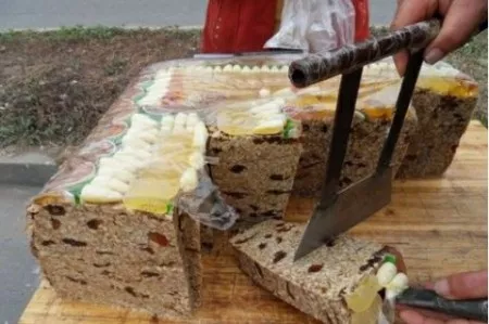 凌源切糕 凌源切糕,又稱粘糕、年糕,與喀左碗砣、凌源豆腐腦并稱為“朝陽(yáng)三宗寶”,是朝陽(yáng)凌源地方特色小吃。凌源切糕工藝制作具有遼西鮮明特色,選用上等的江米、豌豆、大棗為原料,先將粘米用清水淘洗三次,除去雜質(zhì)。晾曬適度后加工成細(xì)面,臨蒸時(shí)掌握好米面的干濕度,拌成小顆粒狀備用。鍋中放蒸簾,最底層撒紅棗,用手把面撒均勻,鍋下火燒適度,一邊撒一邊燒火,面撒完后,上面撒一層蕓豆,最后再撒一層面,鍋加蓋子蒸5至10分鐘即可。 贊 (0) 39 151 生成海報(bào) 牛犢湯 下一篇 2008-08-08 凌源羊湯 上一篇 2008-08-08 相關(guān)推薦