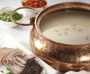 海門提湯羊肉是南通地區(qū)傳統(tǒng)特色名饌,在解放前已是馳譽(yù)大江南北的特色菜肴,當(dāng)時(shí)的江、浙、滬等大城市中的飯菜館,常把“海門提湯羊肉”作為掛牌菜肴,屬于蘇菜之通幫菜、江海菜。該道菜選用以肥嫩鮮美著稱的海門山羊肉為原料,經(jīng)過獨(dú)特烹調(diào)而成,具有鮮嫩、多汁、味美、肉精、脂少、易消化、膻味輕等特點(diǎn),羊湯乳白稠濃,鮮美醇厚。提湯羊肉都在冬天制作,可拌上粉絲、青菜心用原湯白燒;??梢陨厢u油、冰糖和少許羊油紅燜。三種吃法別有滋味,同中有異,異中有同,妙不可言。無怪乎海門提湯羊肉,要列入通海平原菜譜之冠。